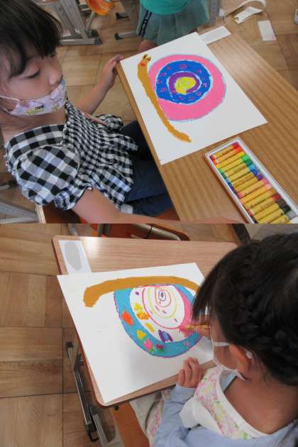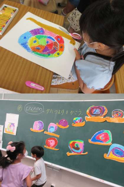 じぶんだけの「かたつむり」,うまく描けましたね。