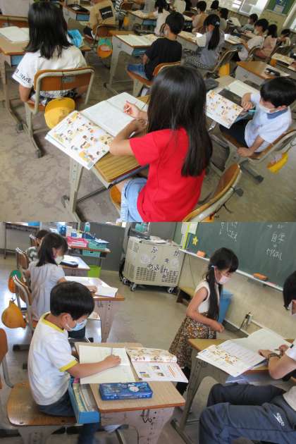 「たすのかな ひくのかな」の問題文を写し,解答しました。できたノートは先生に見てもらいました。