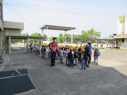 今日は3年生校外学習の日です。 午後からの天気が心配ですが,みんな元気に集合しました。