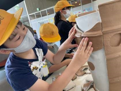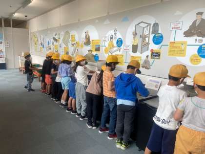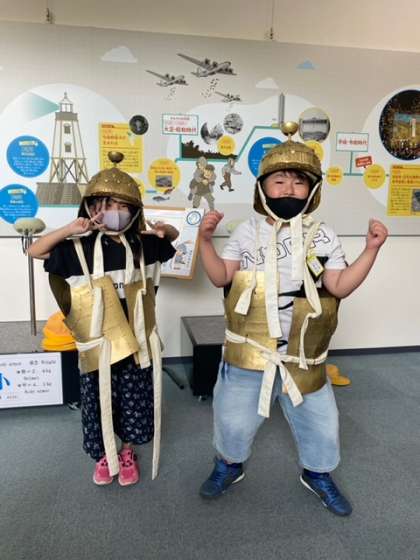 体験コーナーでは甲冑を着たり、シアター室では古墳についての映像を見ています