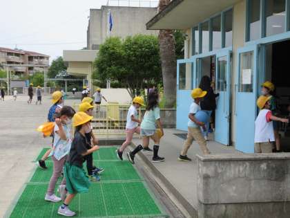 素早く昇降口へ戻っていく子どもたちです。