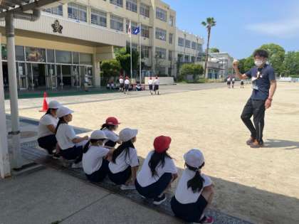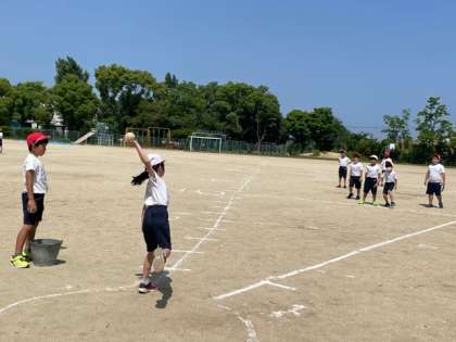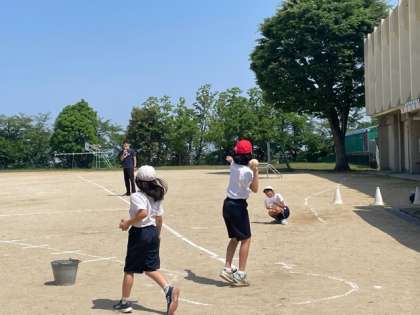 3,4年生の様子です。 上体起こし,反復横跳び,ソフトボール投げなどの記録を計測します。