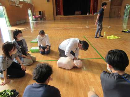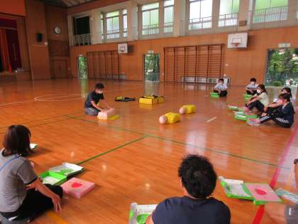 水泳授業開始を前に職員で心肺蘇生法研修を行いました。