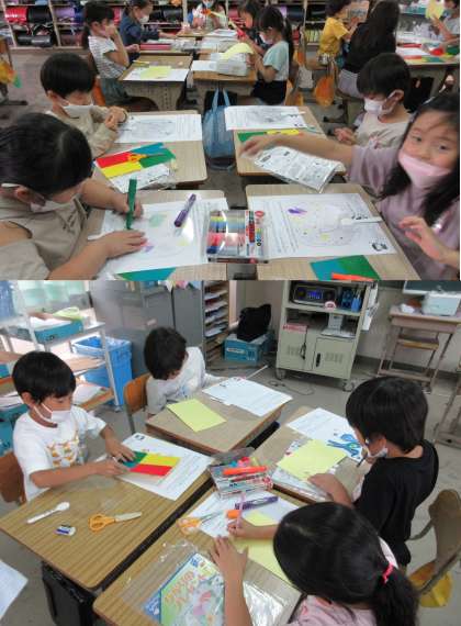 1組は図工の時間です。