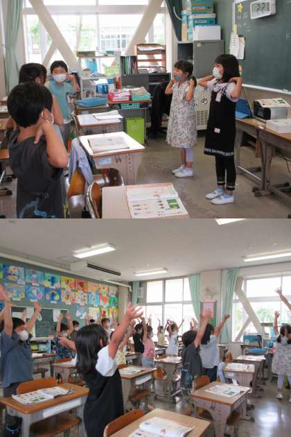3組の音楽の時間では♫ドレミのうた♫を体全体で表現していました。