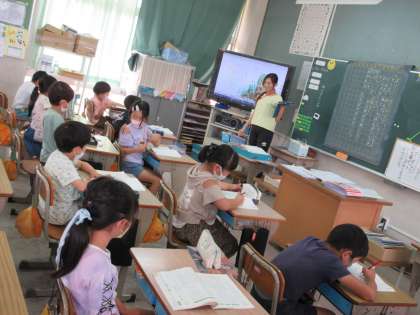 国語の授業で『スイミー』を学習中の1組の子どもたちです。