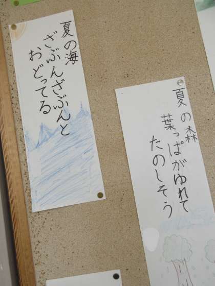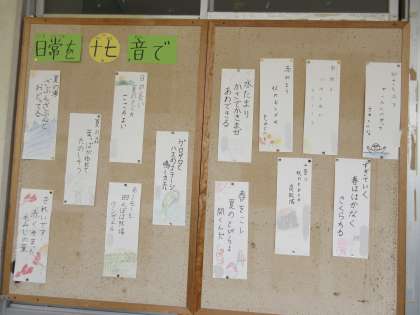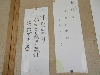今月の掲示は5年生の俳句作品です。素敵な情景が十七音で表現されています。