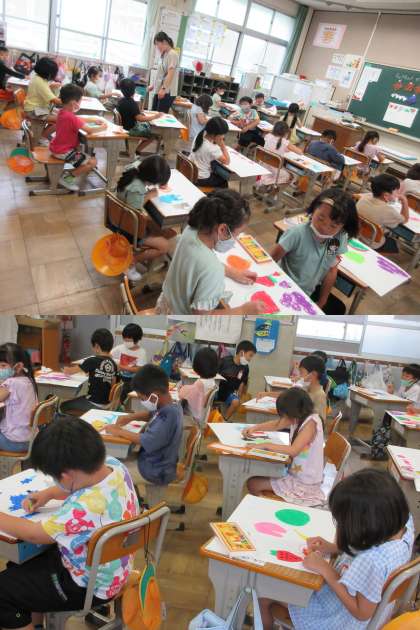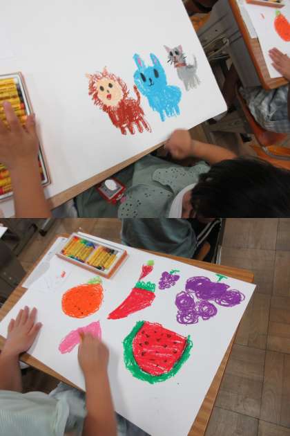 フルーツや動物,花などテーマを決めて,まずは絵を描いていきました。