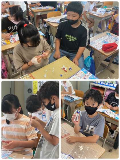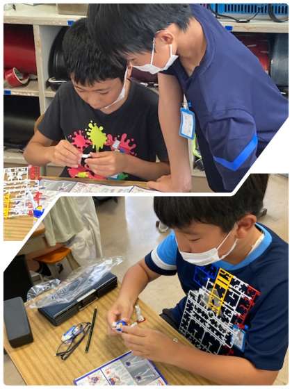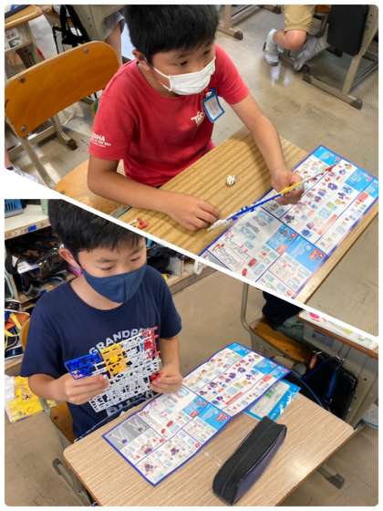 設計図通りに,部品を外して向きを確認し組み立てていく活動は,慣れていない子どもたちにとっては難しいものだったようです。慣れている子どもたちは組み立ててから,友だちを教えていました。