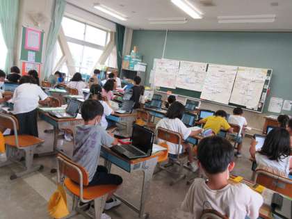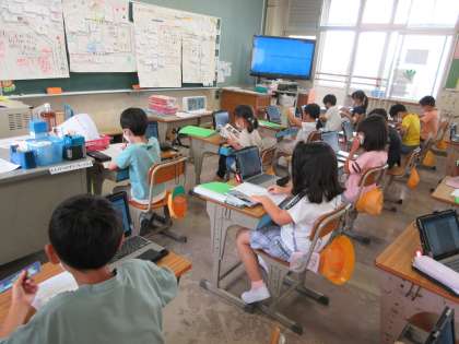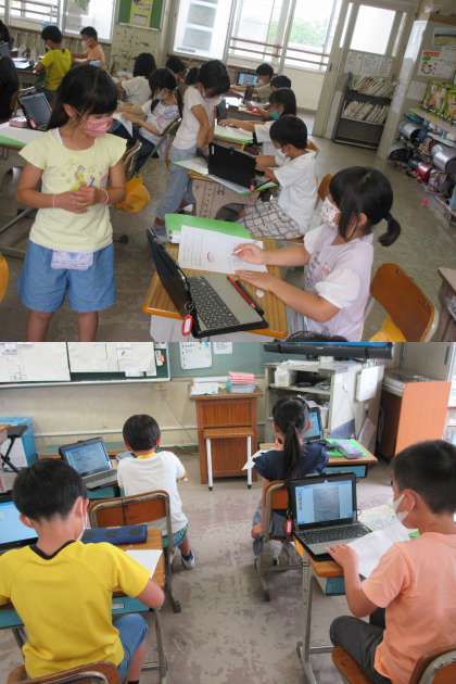 「まちが大すき たんけんたい」のまとめを書いている3組です。