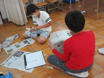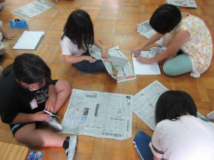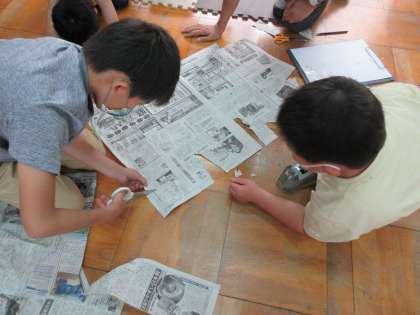 設定されたキーワードの文字を,新聞の文字を切り抜いて作っていきました。