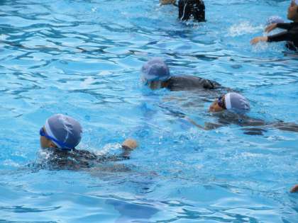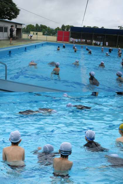 3年生の水泳授業の様子です。だるま浮きや,ばた足の練習を行いました。