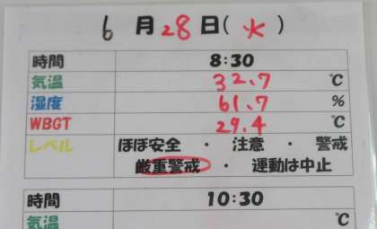 保健委員会が中心となって毎日の熱中症指数を計測してくれています。