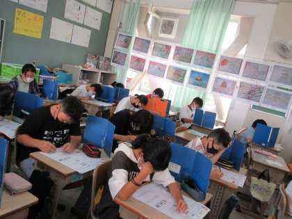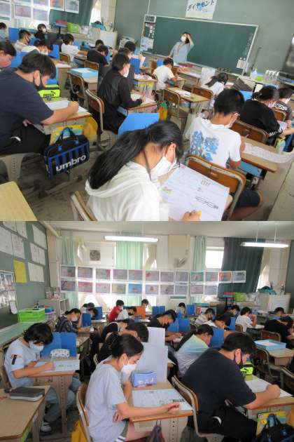 算数「場合の数」のテストにチャレンジしている1組の子どもたちです。みんな1問1問しっかりと考えています。