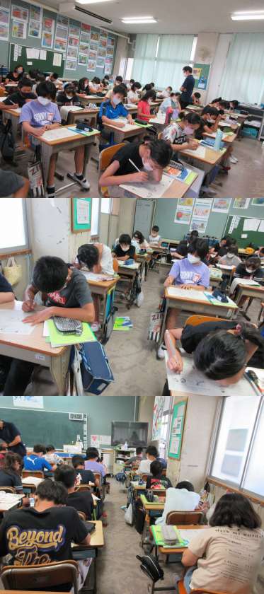 2組は理科の授業です。 今日は「生物どうしのつながり」のテストです。 集中して取り組んでいました。
