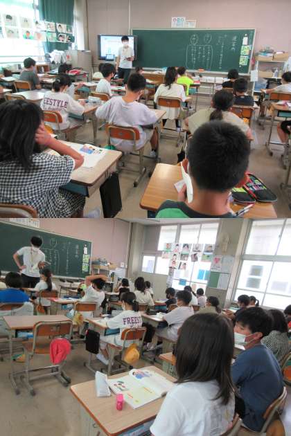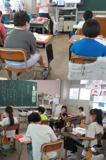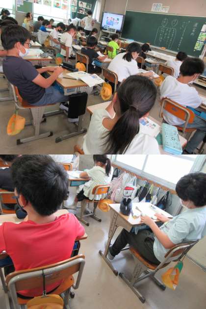 1組は道徳の授業です。 『道案内』を読んで,親切・思いやりとは何か,を考えています。