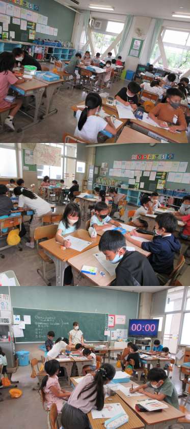 7月14日(木)2年生 公開日 2022/07/14 更新日 2022/07/14 2年 「生きもの ふりかえりカード」を書いている2組の子どもたちです。 そのあと,お手紙を書いているお友だちもいました。