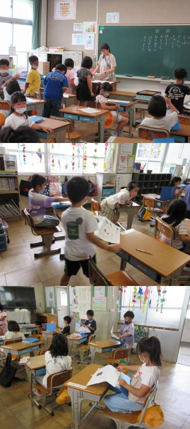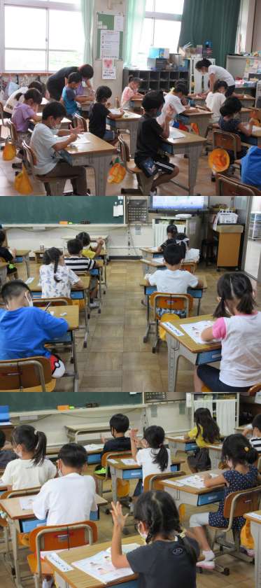7月19日(火)各クラスの様子 公開日 2022/07/19 更新日 2022/07/19 1年 1学期は明日(終業式)までとなりました。 今日は給食最終日,午後からは大そうじです。 午前中,各学年,各クラスとも夏休みの宿題や各種お手紙などの配布,そしてお楽しみ会などが行われていました。 まずは1年生の様子です。