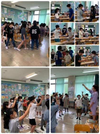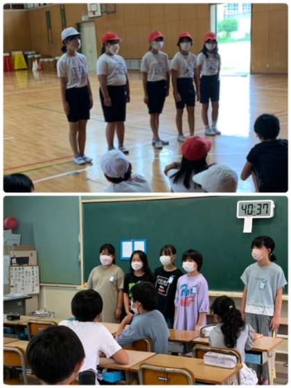 7月19日(火)5年生 公開日 2022/07/19 更新日 2022/07/19 5年 3組は金曜日,火曜日の2日に分けて, 教室と体育館でみんなあそびをしました。 みんなあそび係を筆頭に協力して 楽しい時間になりましたね。 汗だくになって「休み時間も延長してやりたい!」 とキラキラな子どもたちでした。