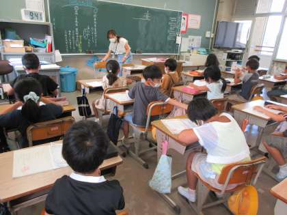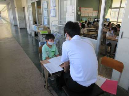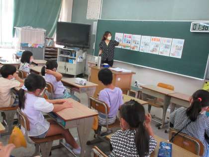 各クラスの様子です。夏休みの過ごし方などのお話をしっかり聞いている2年生の子どもたちです。