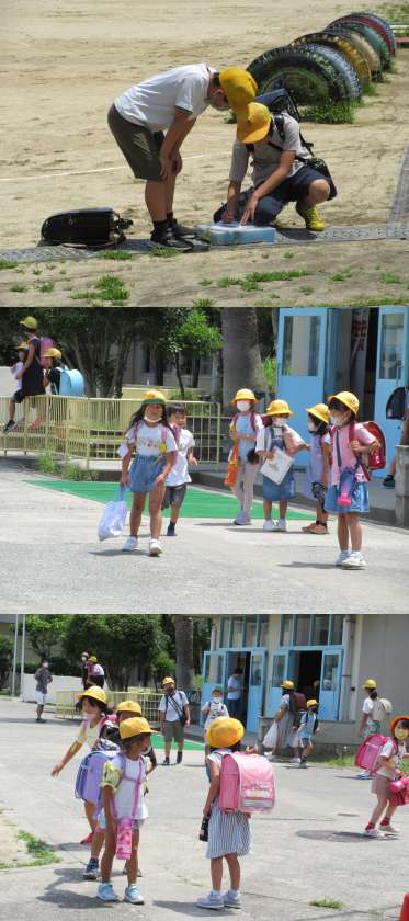 下校時刻となりました。 続々と子どもたちが昇降口から出てきました。