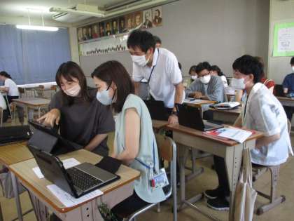 小中合同研修会 公開日 2022/07/29 更新日 2022/07/29 学校紹介 福泉南中学校,桃山台小学校,福泉中央小学校の3校の教職員が,合同研修会を実施しました。 ICTの活用についての研修会です。ICT教育で活躍中の堺市内の中学校のお二人の先生をお招きして,有意義な研修となりました。