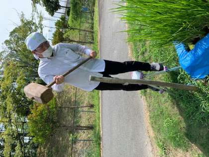 学校で育てている稲は,160cmの先生にもうすぐ追いつきそうなくらいぐんぐんと伸びてきて,花が咲き,きれいな実がつき始めています。