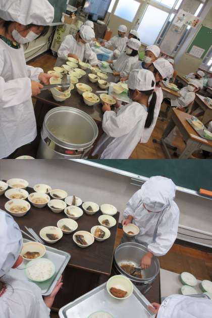 8月29日(月)1年生 公開日 2022/08/29 更新日 2022/08/29 1年 給食の配膳の様子です。 また今日からおいしい給食をいただくことができますね。 写真はテキパキと動く1年3組の子どもたちです。