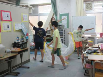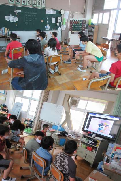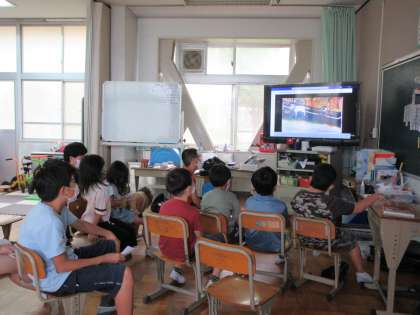 朝の会の後,『ぼくのかえりみち』の絵本を大型テレビで観ました。