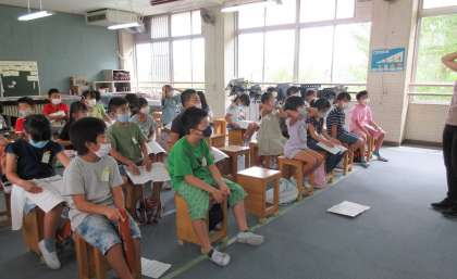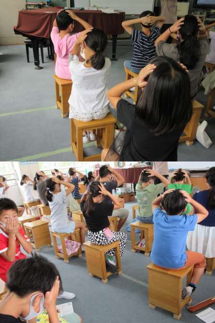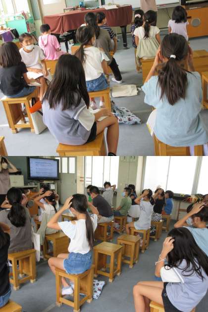 9月1日(木)3年生 公開日 2022/09/01 更新日 2022/09/01 3年 2組,音楽の授業の様子です。 「Head,Shoulders,Knees And Toes」という曲でジェスチャーを使って歌を楽しんでいます。