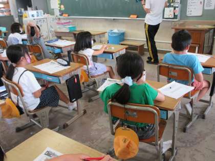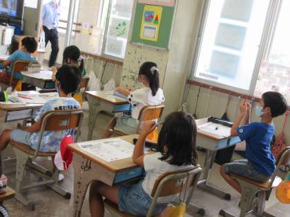 「水のかさ」について,算数ワークの答え合わせをしている2組の様子です。