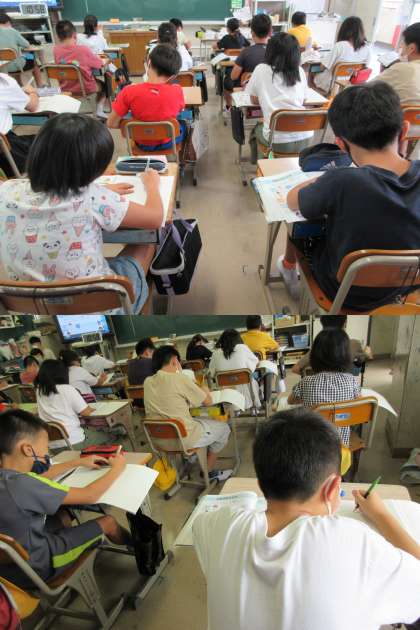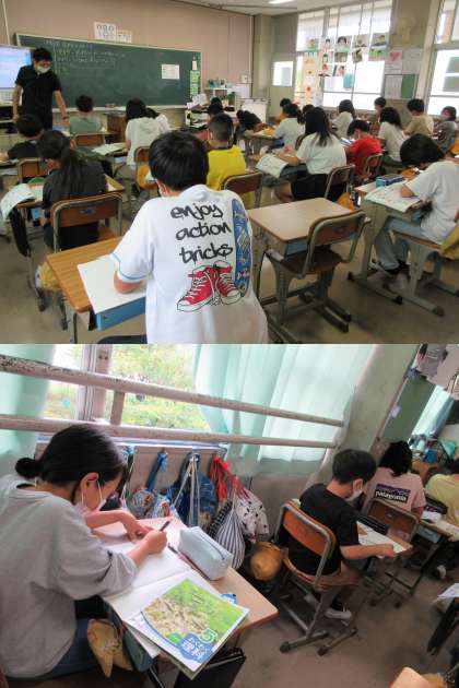 9月9日(金)5年生 公開日 2022/09/09 更新日 2022/09/09 5年 理科の授業では「花粉のはたらき」について学習しています。 今日は,受粉しなければ実はできないのか,についての予想を立てました。 写真は1組です。