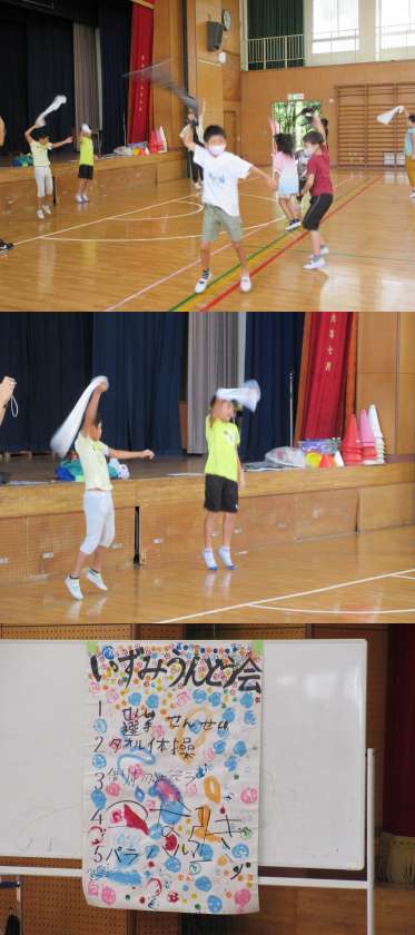 9月9日(金)いずみ学級 公開日 2022/09/09 更新日 2022/09/09 いずみ学級 参観での「いずみうんどう会」が明日に迫ってきました。 子どもたちは最後の練習・リハーサルです。タオル体操はもう完璧かな。 借り物競争のルール確認も行いました。