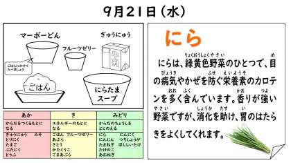 9月21日(水)今日の給食