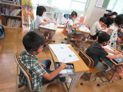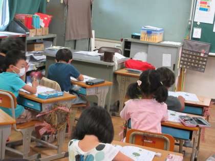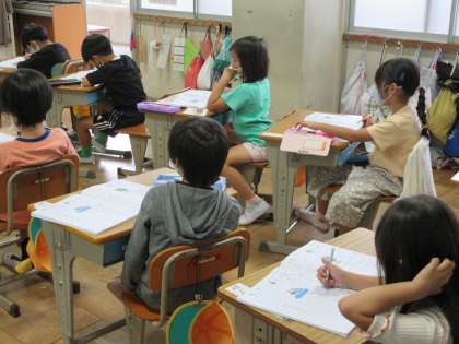 9月21日(水)1年生 公開日 2022/09/21 更新日 2022/09/21 1年 3組のこくごの授業です。 漢字の学習では「木」や「大」を習いました。 「大」を使っての用例では「大おかず」という身近な答えが出ていました。