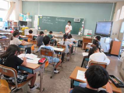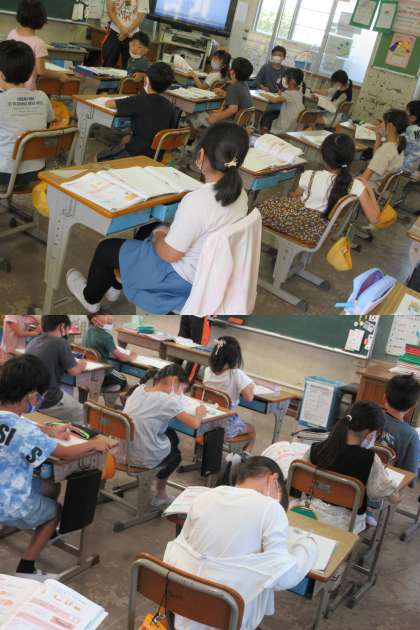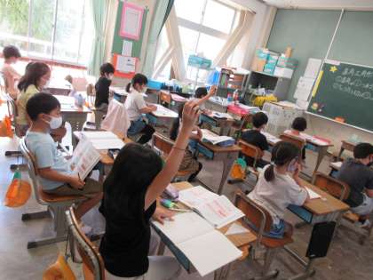 「直角三角形」について学習している3組の子どもたちです。 おともだちの意見にしっかりと耳を傾けていました。