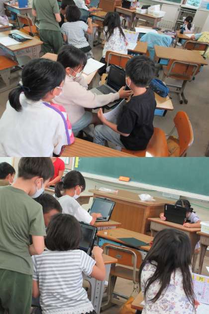 9月26日(月)3年生 公開日 2022/09/26 更新日 2022/09/26 3年 体育で実施している「ミニハードル走」の振り返りの時間です。 タブレットで撮影した動画を見ながらしっかり確認しています。