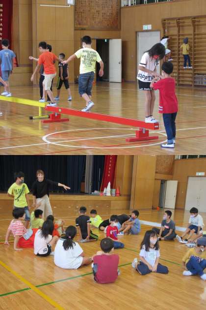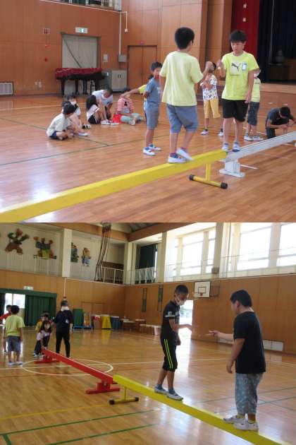 いずみ学級の運動の時間です。バランス感覚を養いながら楽しく平均台じゃんけんを行いました。