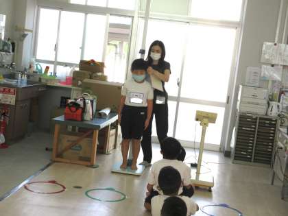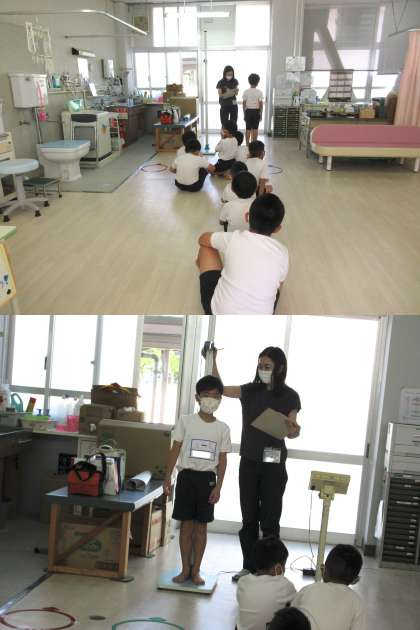 2組は保健室で発育測定を実施していました。 背が伸びているかドキドキですね。