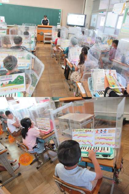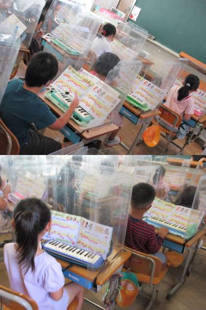 今日は鍵盤ハーモニカで「おとのまねっこ」です。