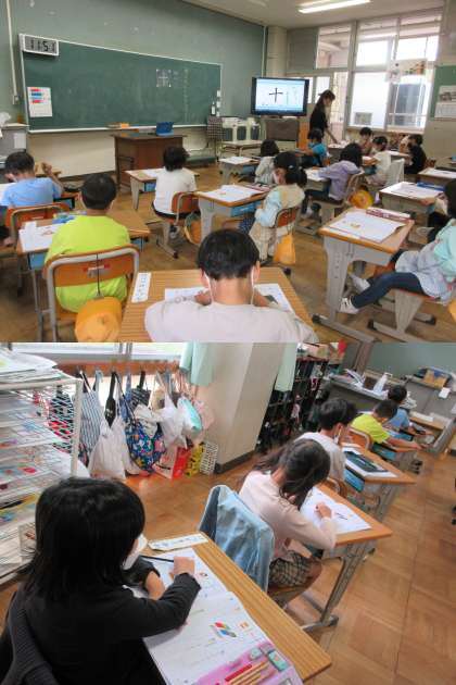 国語の時間,3組の様子です。 今日は「十」の漢字を練習しました。