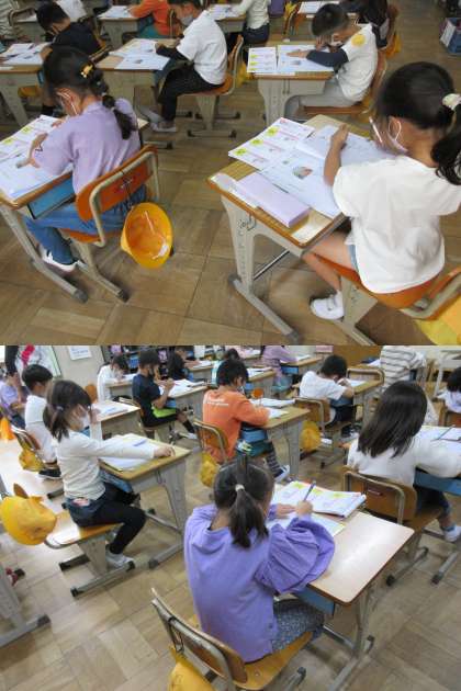 2組,国語の時間です。「学」」という漢字を練習しました。 「学」を使った熟語もたくさんありますね。