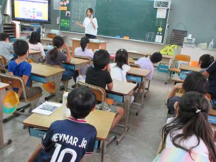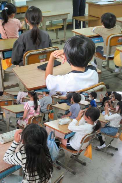 先日,代表委員会から各クラスに体育参観のスローガンについて話がありましたが,そのスローガンを元に各クラスごとの「めあて」を決めています。写真は1組です。