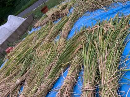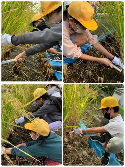 その稲を今日の4〜6時間目にかけて,1・2・3組で収穫をしました。