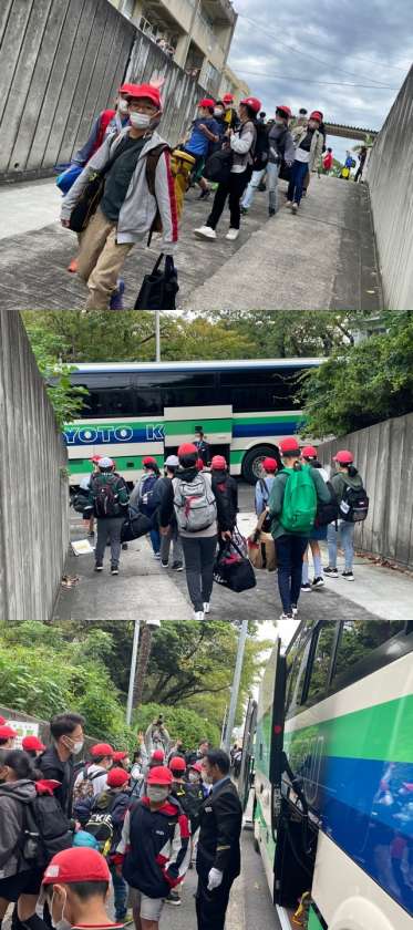 実行委員さんの言葉の後,いよいよバスに乗り込みます。