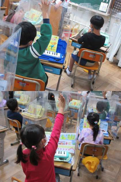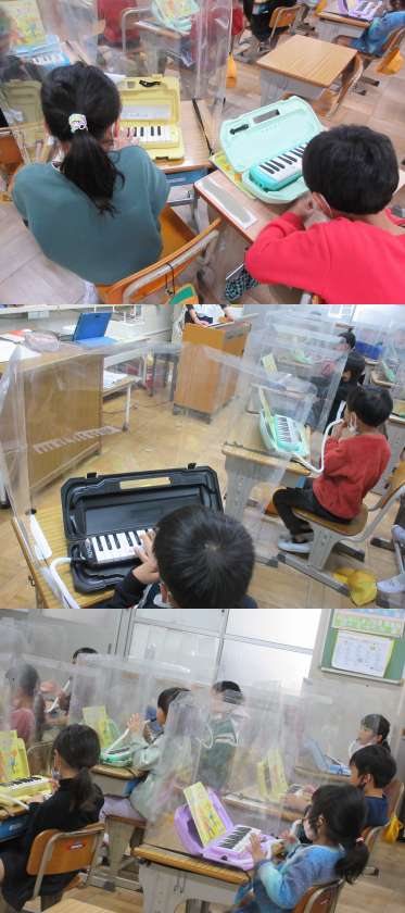 11月14日(月)1年生 公開日 2022/11/14 更新日 2022/11/14 1年 おんがくの時間です。 鍵盤ハーモニカで「ミファソ」「ファミレ」などの音を聞き分けました。 楽しそうに活動している2組の子どもたちです。