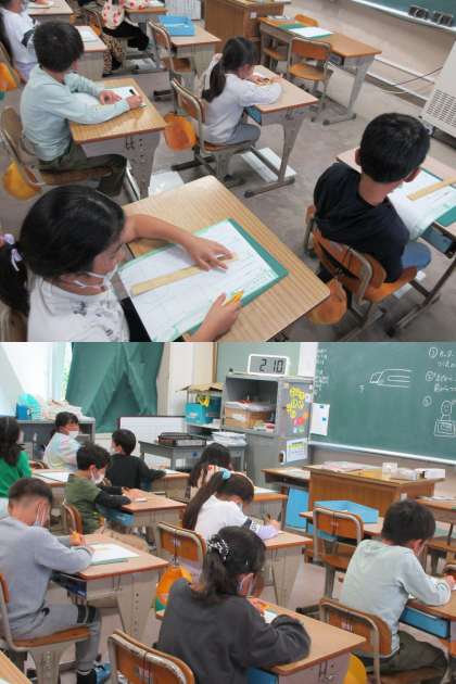11月14日(月)2年生 公開日 2022/11/14 更新日 2022/11/14 2年 カッターナイフで紙を切るための練習を行っている2組の子どもたちです。 机にカッターマットを敷いてその上で真っすぐに切ったりジグザグに切ったりしました。刃の方向や紙をおさえる手の置き方にも十分気をつけて活動しています。