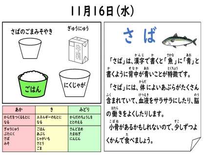 11月16日(水)今日の給食