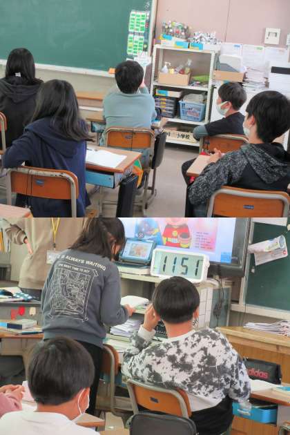 1組の国語の時間です。