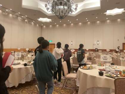 いよいよ夕食の時間です。実行委員2人の「いただきます」でみんな声を合わせました。